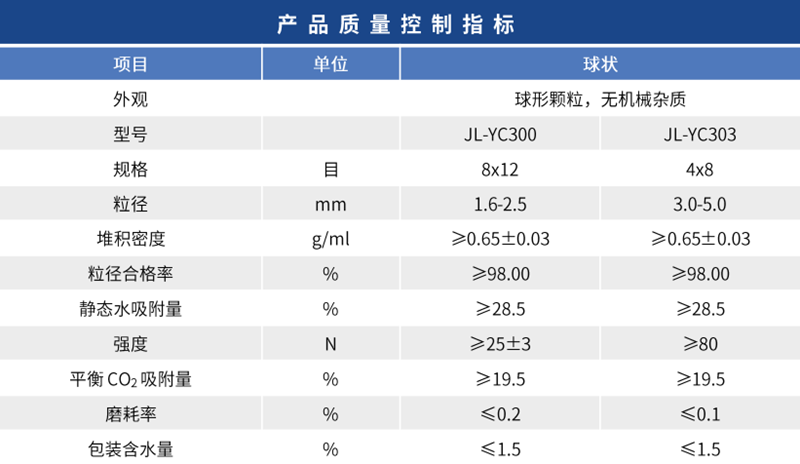 YC300/303型分子篩,主要應(yīng)用在深冷空分制氧裝置上,產(chǎn)品有強(qiáng)度高,不易粉化,吸附速率快,使用壽命長等等優(yōu)點(diǎn)。